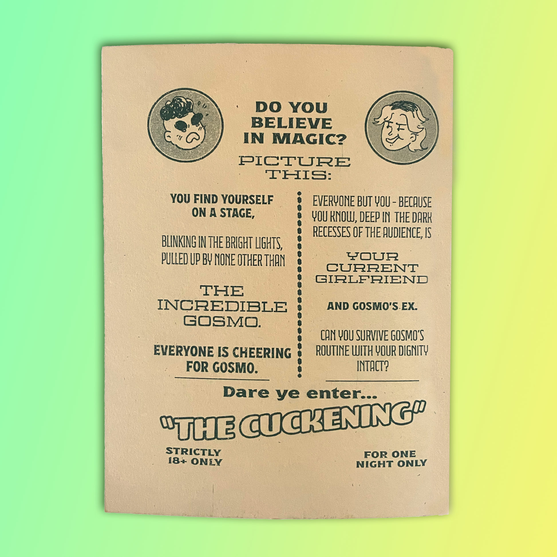 It might be your worst nightmare: you've taken your girlfriend out for a wonderful date, but it all goes wrong when tonight's entertainment is none other than your girlfriend's ex. What's worse? They're a magician, and the Incredible Gosmo is about to make a fool out of you on stage. Can you make it through the routine with your dignity intact?